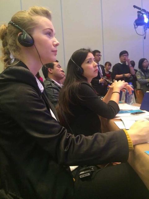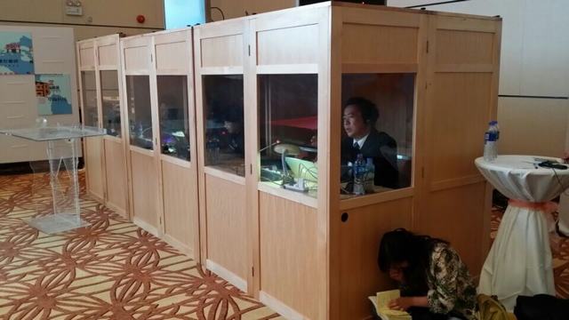 由于整场论坛都是采取同声传译,各嘉宾领取器材