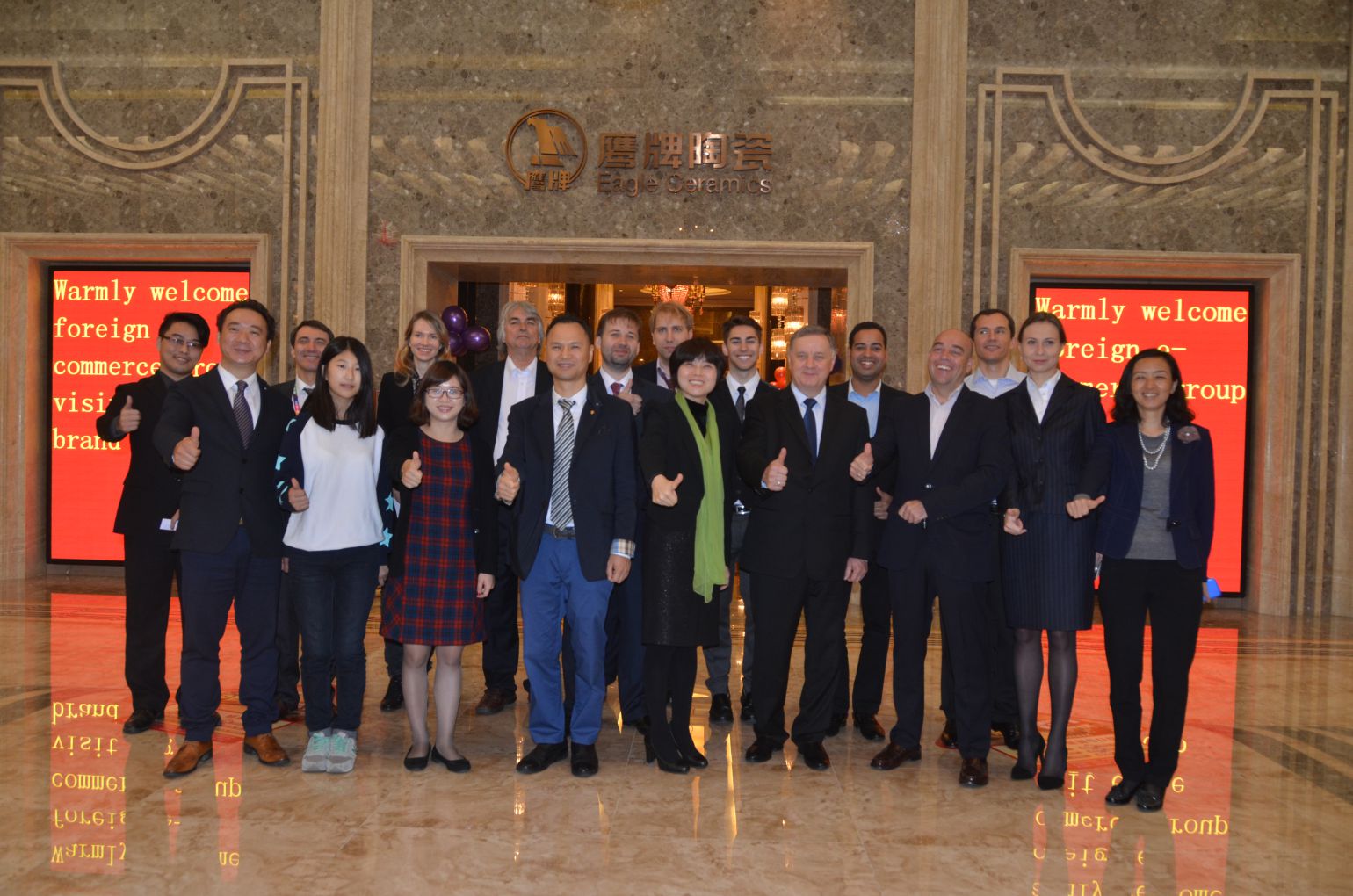 他们一行参观了鹰牌陶瓷、智慧新城、家博城、中国陶瓷城、华夏陶瓷城以及南风古灶。