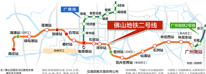 4月8日,佛山市及禅城区的轨道办等部门召开新闻发布会宣布,佛山地铁二号线已具备全线开工条件,而今年计划8个站点同时开工。