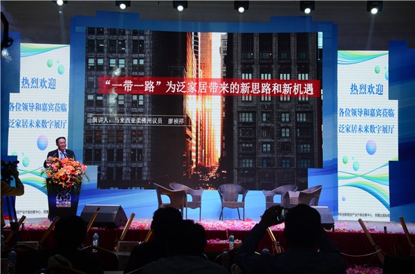 此外,马来西亚柔佛州议员廖祯祥就“‘一带一路’为泛家居带来的新思路和新机遇”发表演讲。他深入揭示了何为“一带一路”并分析了“一带一路”的本质内涵。