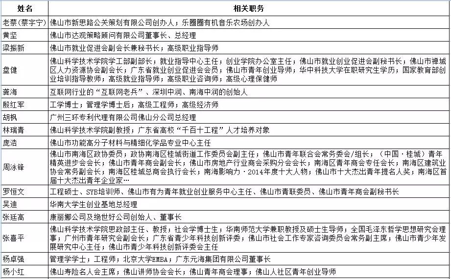 本次活动共续聘和新聘23位具有丰富创业理论和成功创业经验的专家教授、企业家、企业高管、政府部门干部、财务专家、税务师、律师以及社会组织负责人等为佛山市创业导师。