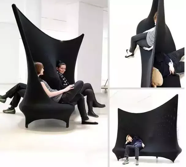 幕墙沙发是把墙壁和沙发拼到一起的产物。坐着舒服,而且还能和墙背面的人聊天。感觉墙背面那个人的动作和声音声音,你还能猜到他在做什么。